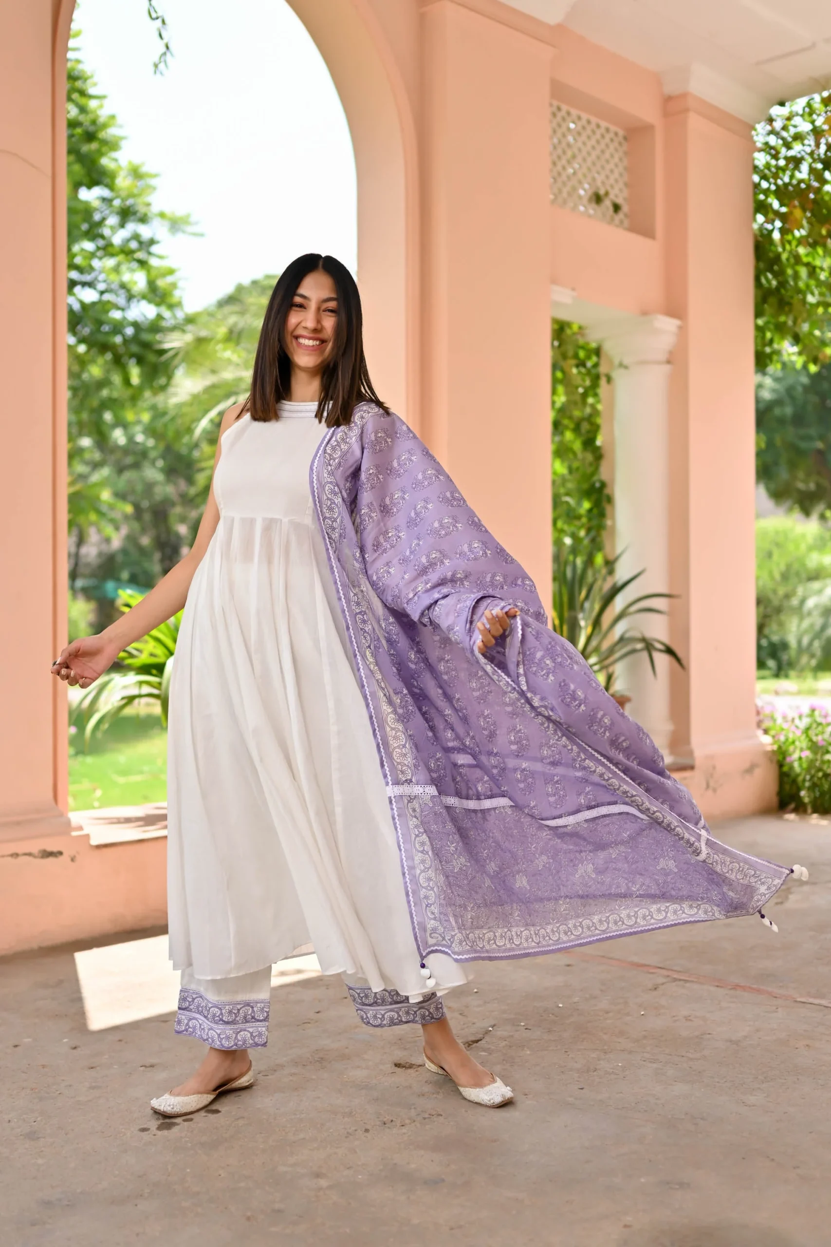 The Vasvi Trio Cotton Suit Set is a perfect choice for a blend of timeless elegance and modern charm. Crafted from the most luxurious cotton mulmul fabric, this set features rich hues of whimsical white, creating a look that is both sophisticated and serene. The contrasting dupatta adds a striking element, enhancing the overall appeal. Imagine wearing this beautiful ensemble on a rainy day, feeling the soft, breathable fabric enveloping you in comfort. The Vasvi Trio Cotton Suit Set effortlessly elevates your style, making every day feel special, no matter the weather.